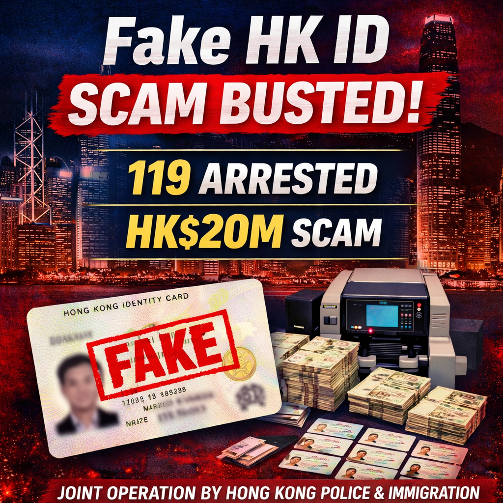 During raids at multiple locations, authorities seized around 40 counterfeit HKID cards, along with document-printing equipment, digital storage devices, and other key evidence linked to the operation.